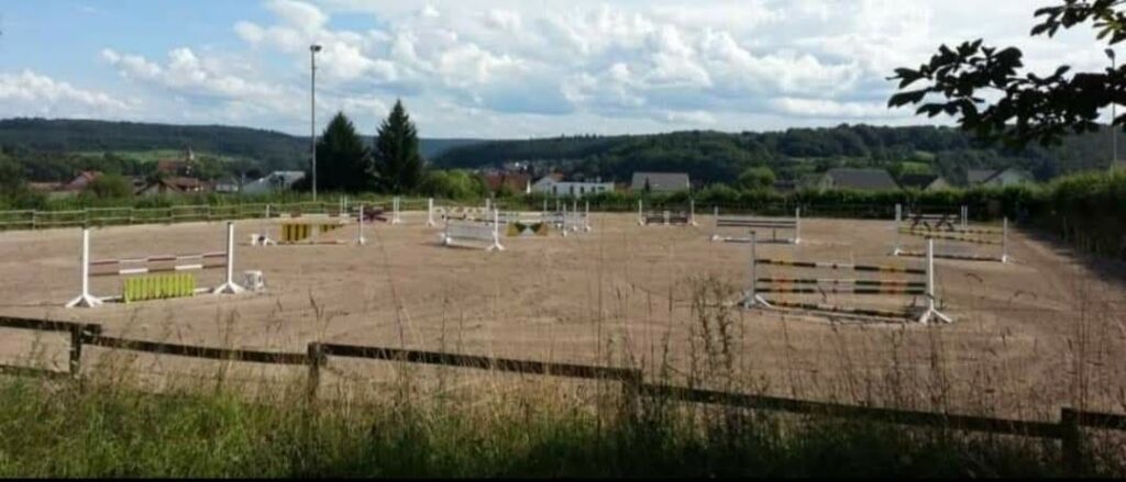 A jumping course is permanently set up on the large outdoor riding arena (45 x 70 m) during the summer months. Here, you can train with your horse in peace and quiet while enjoying the beautiful view of the Black Forest.